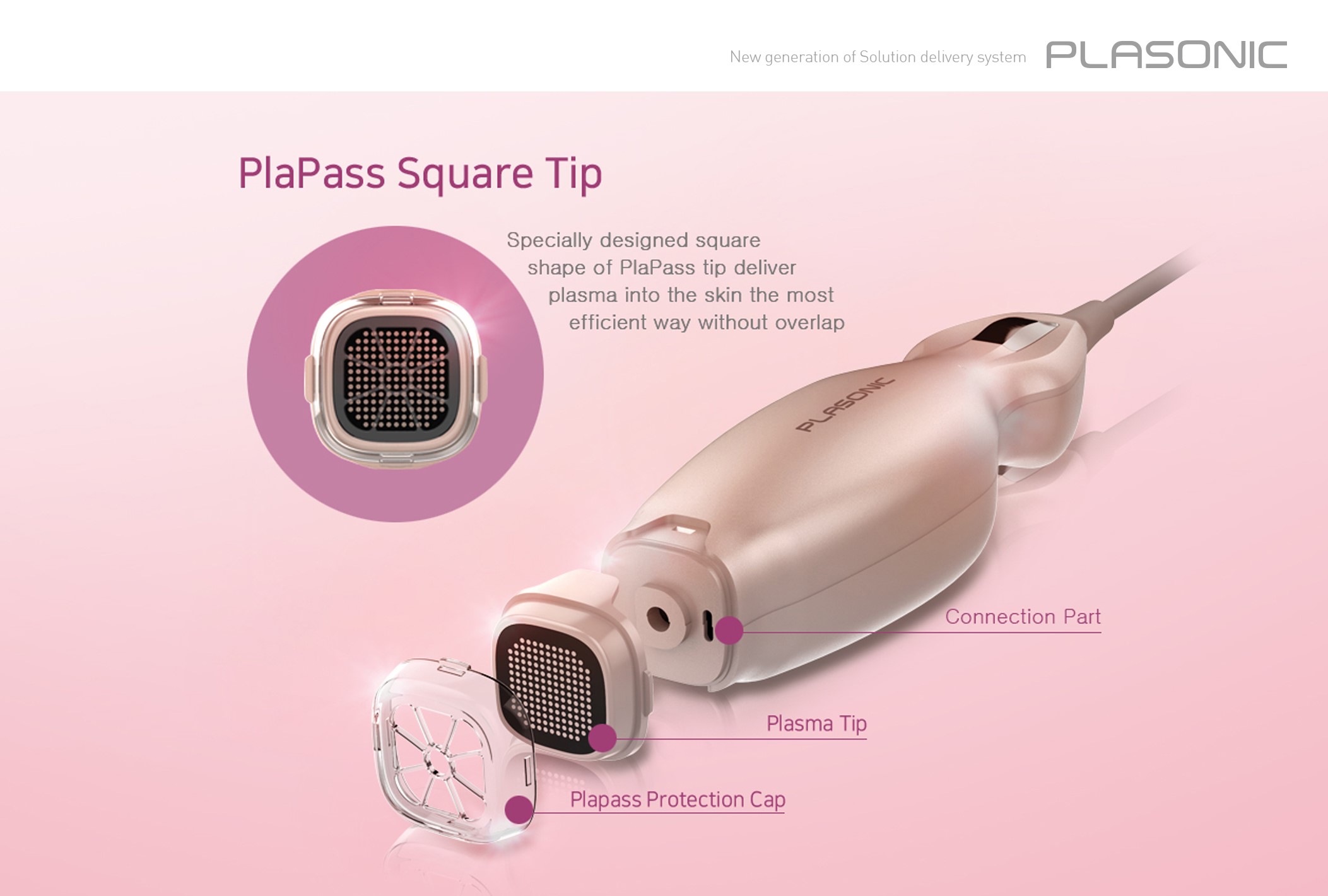 • Specially designed square shape of PlaPass Tip deliver plasma into the skin the most efficient way without overlap