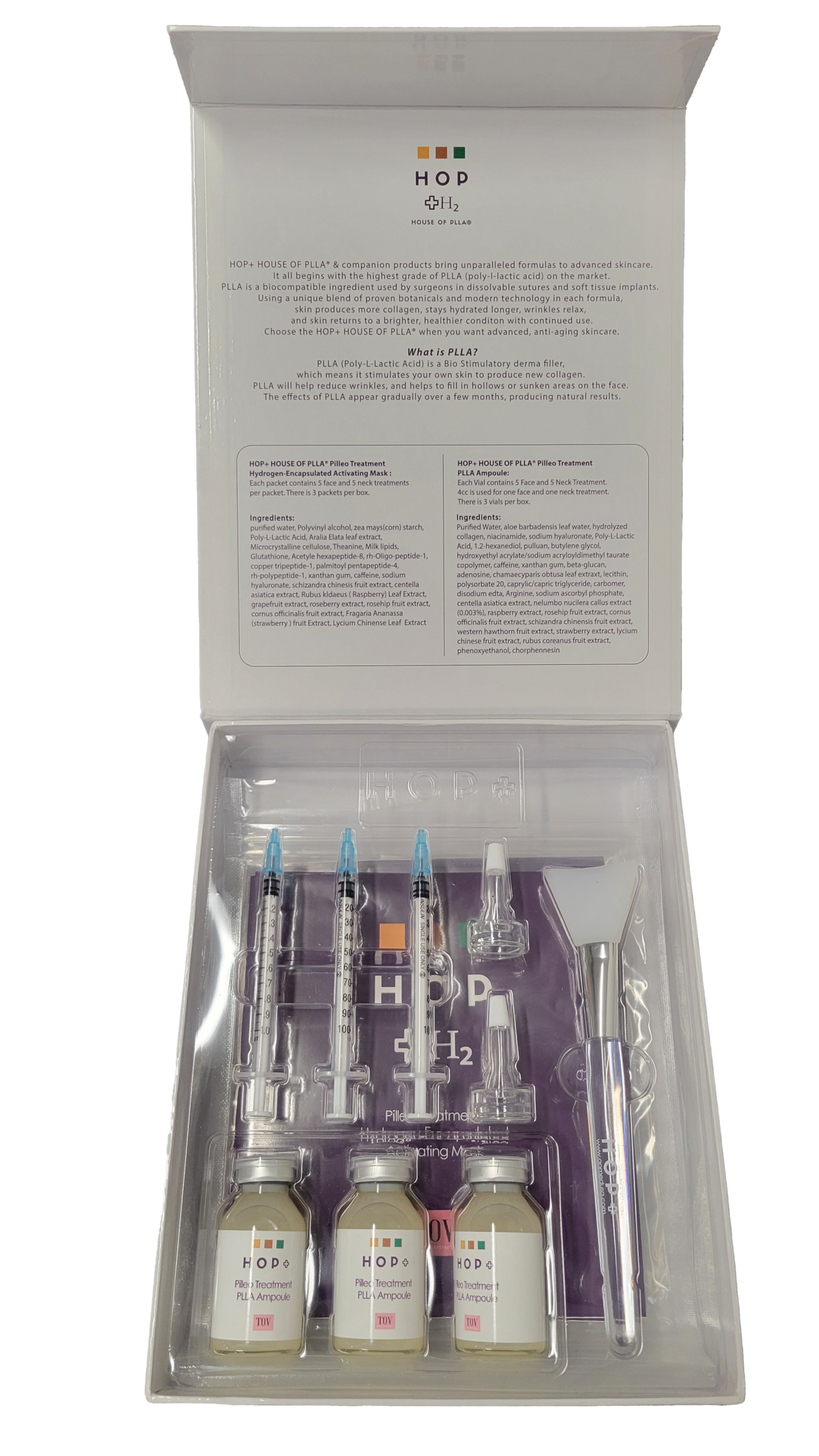 Sculplla Facial Filler Mask kit contains 25 Face & Neck Treatments. Â In addition to PLLA (poly-l-lactic acid), it contains peptides like EGF which helps collagen production, skin gets brighter with use, pores tighten, blackhead are reduced, and of course it has the plumping effect (think non-invasive filler) no down-time!