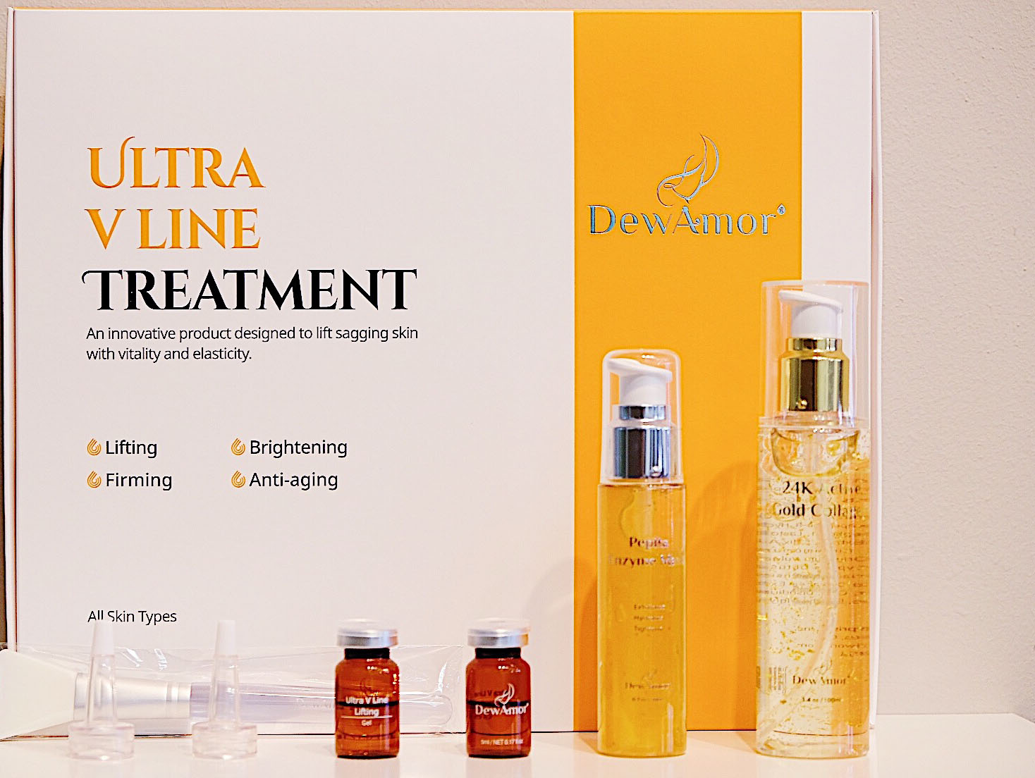 DewAmor® Ultra V Line treatment remarkably firms sagging skin and reduces fine lines and wrinkles.